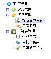 工資模塊的操作可分為六個(gè)步驟:分別是 提成信息設(shè)置—工資職級(jí)設(shè)置—員工職級(jí)設(shè)置—生成工資表—審核工資表—已審核工資表