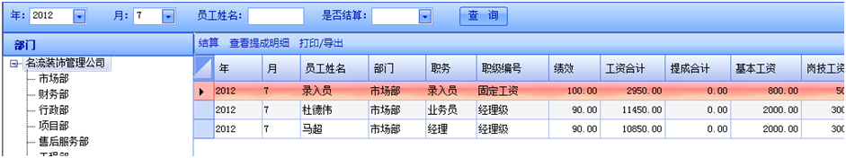 已審核工資表的界面如圖所示,用權(quán)限的用戶可以在這里進(jìn)行工資結(jié)算。