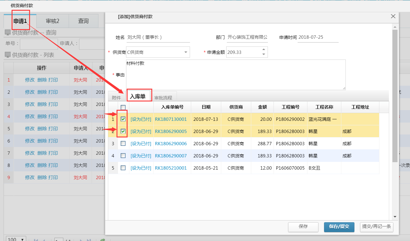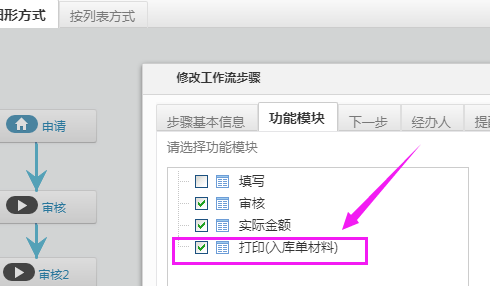 首先在工作流程中將【打印(入庫單材料)】此項功能選中,我們在工作臺---供貨商付款---打印才能顯示相關信息