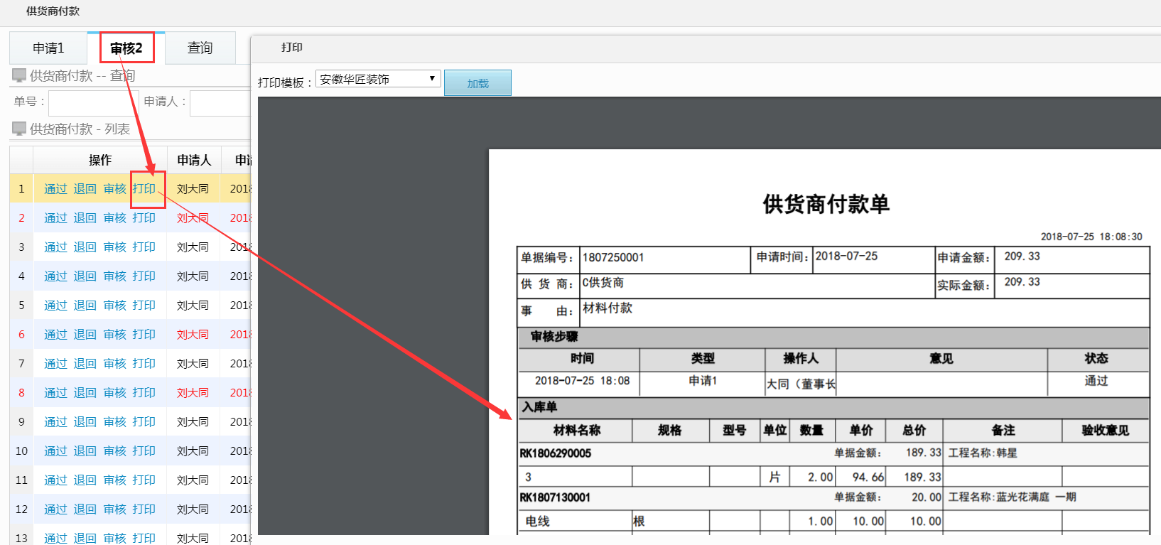 具體的材料明細表,不能快速的了解所支付的這筆款項涉及到哪些材料信息,近期美佳優化了相關供貨商付款的打印格式,還