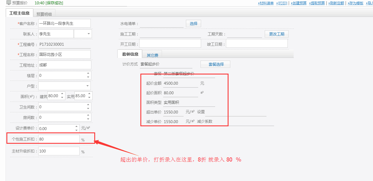 制作預算的時候 可以將折扣填寫到以下圖片標注的方框里哦
