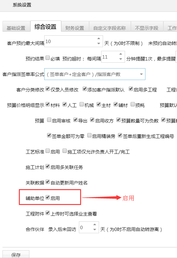 依次點擊:系統設置--綜合設置--啟用輔助單位