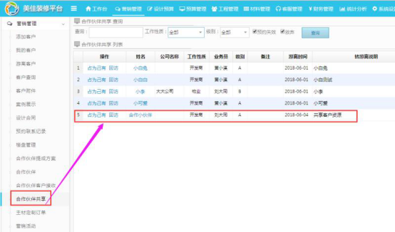 注:只有系統(tǒng)中添加的合作伙伴才能轉(zhuǎn)入共享,微信關(guān)注來的不能共享;