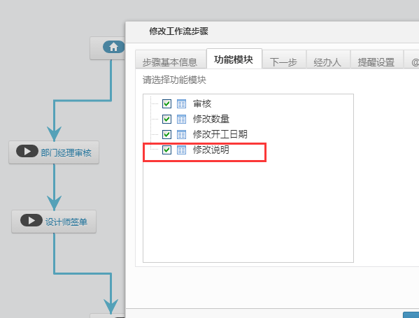 1、進入【系統設置】---【工作流】---【預算審核】,打開功能模塊將修改說明勾選。