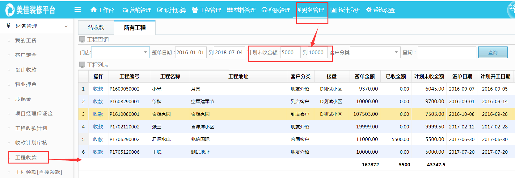 每個工程的收款情況不一,為了快速的根據金額查詢相關的客戶,美佳技術人員根據客戶提出的這一需求開發了相關功能,大家快來看看吧,有什么疑問都可以來咨詢哦!